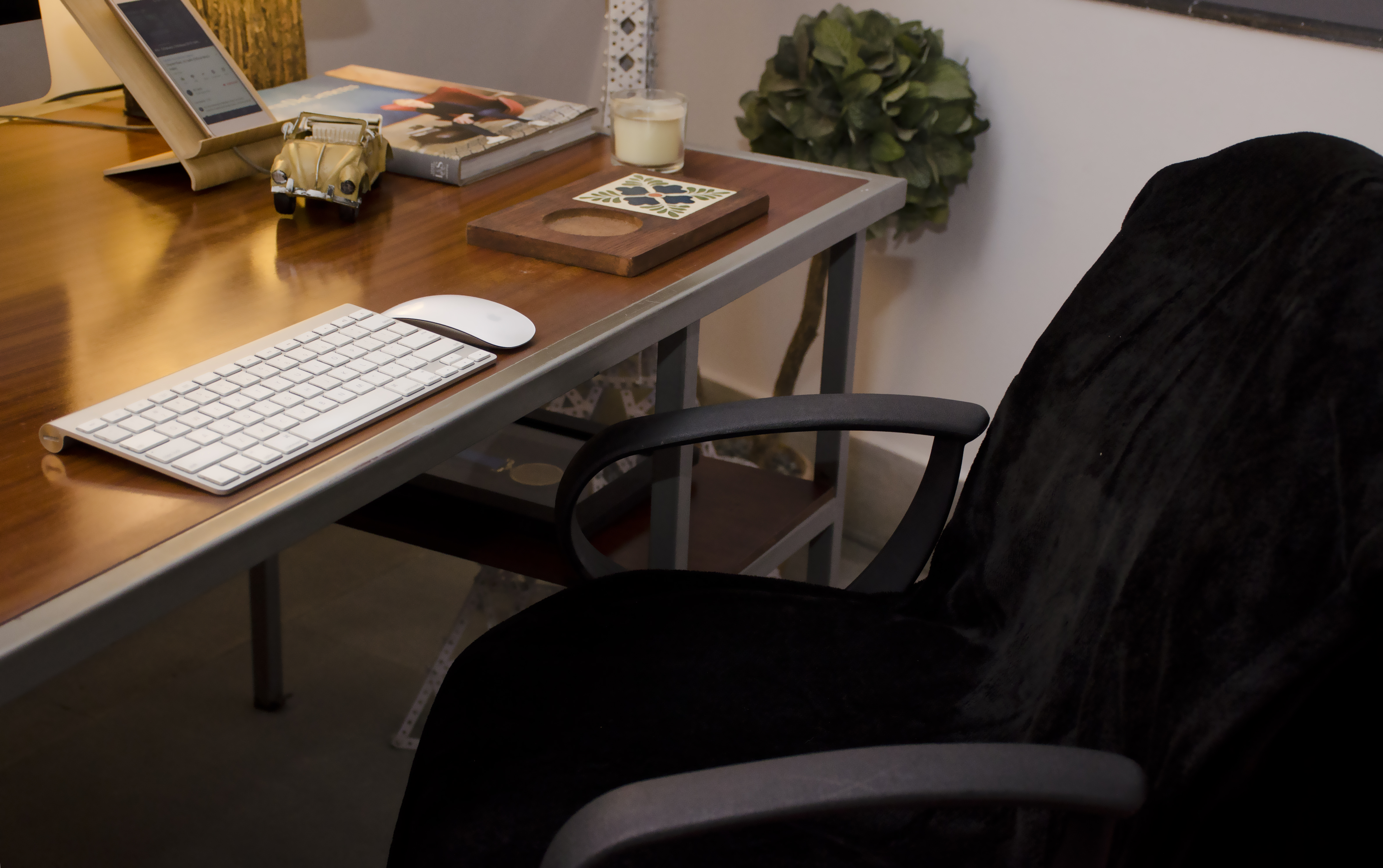 I bought a vibrant coloured rug for this space because I wanted the study to feel more welcoming. My rocking chair has two extremely loud cushions, which my sister gifted me for my London apartment because she wanted a Pakistani element in my room. I placed them over the plain black rocking chair because then it balances it out. I also used my dad’s old office chair, which was hideous beyond words. So, I placed a throw that I got from Primark over the chair to make it a part of the general theme. Throws are great to camouflage hideous furniture pieces.